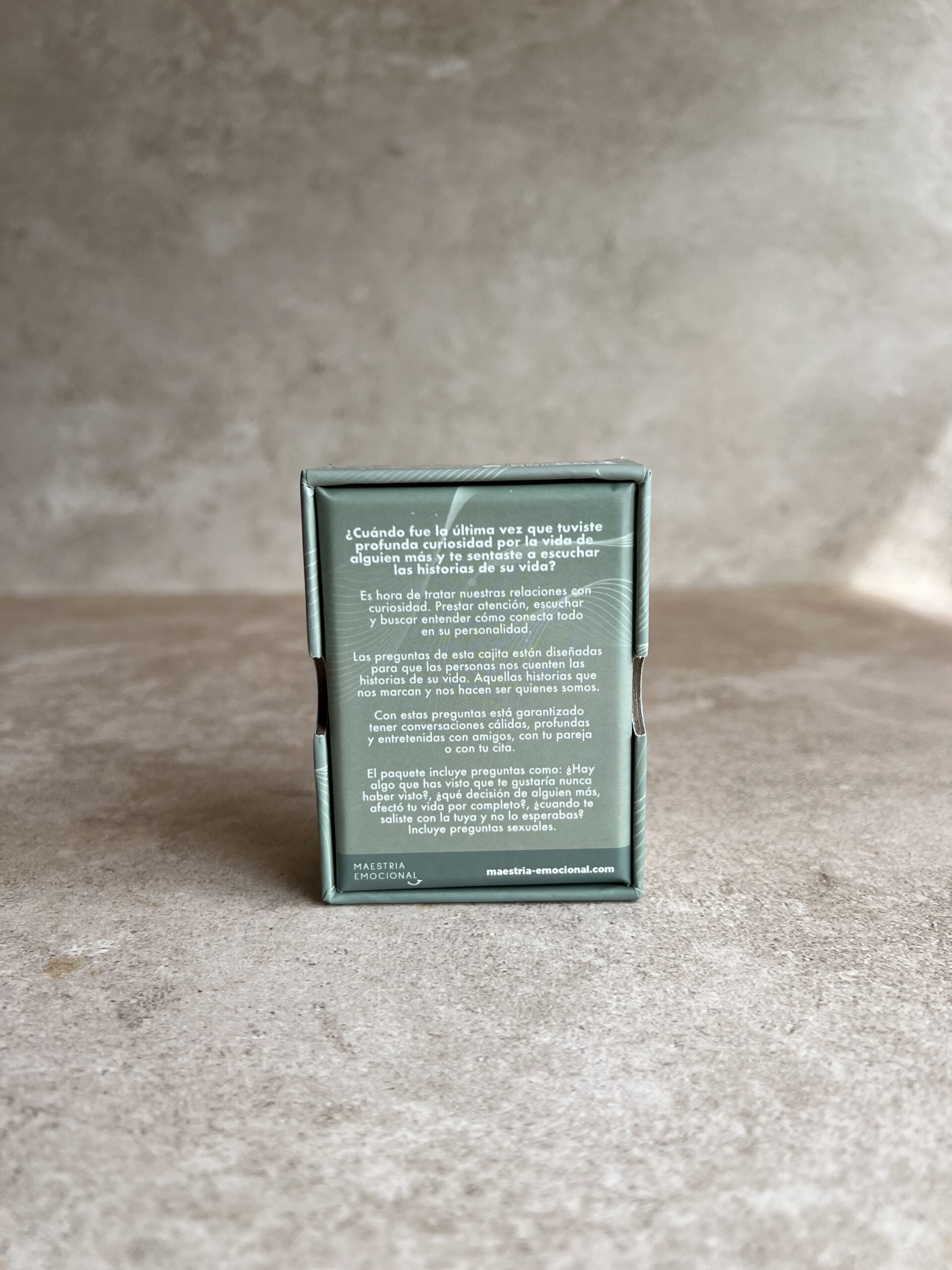 Las preguntas de esta cajita están diseñadas para que las personas nos cuenten las historias de su vida. Aquellas historias que nos marcan y nos hacen ser quienes somos.
